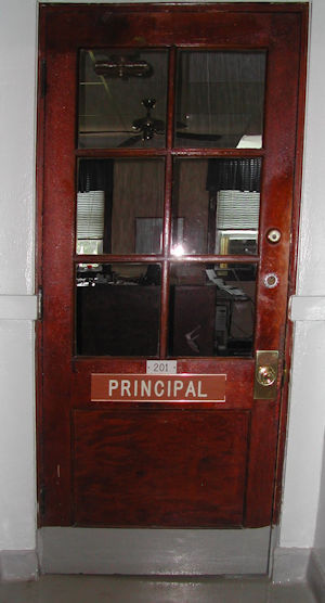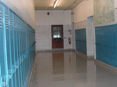 The following photos were taken 2005. The biggest change in the school since we were there were all the bright colors, probably because it was being used as an elementary school at that time. The old wood-shop had been converted into a library.
